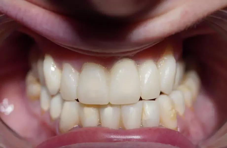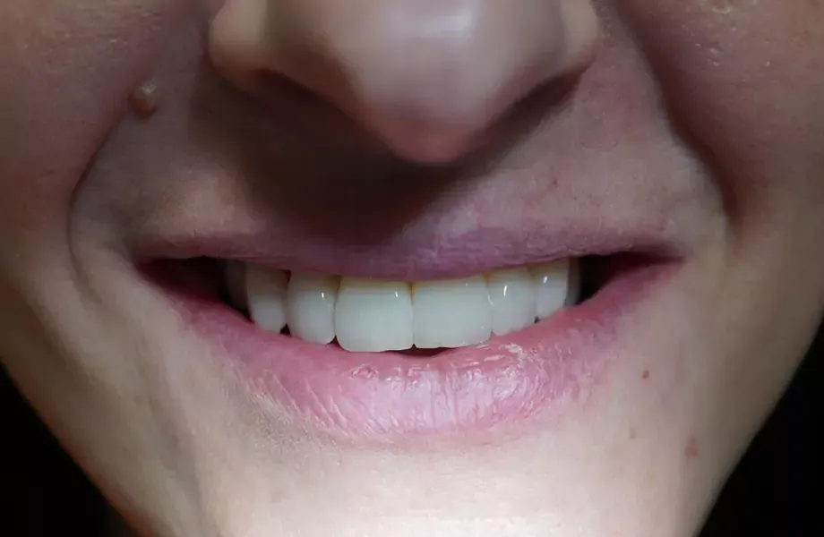 Pacienta s-a prezentat in clinica noastra, nemultumita de estetica zambetului sau. Dupa ce a discutat cu Dr. Antranig si echipa, fiindu-i expuse toate variantele de tratament in vederea reabilitarii totale, inclusiv tratamente ortodontice, aceasta a optat pentru varianta minim invaziva de a recrea zambetul cu ajutorul fatetelor si coroanelor E-max. Intrucat pacienta se deplasa din Suceava pentru tratamente, a beneficiat de exclusivitate in intervalele orare in care s-a prezentat. Astfel, reabilitarea a putut fi realizata in 4 sedinte. In etapele intermediare, au fost folosite lucrari protetice provizorii, pacienta nefiind nevoita sa treaca prin ipostaza neplacuta de a-si simti dintii slefuiti sau a nu putea sa zambeasca.